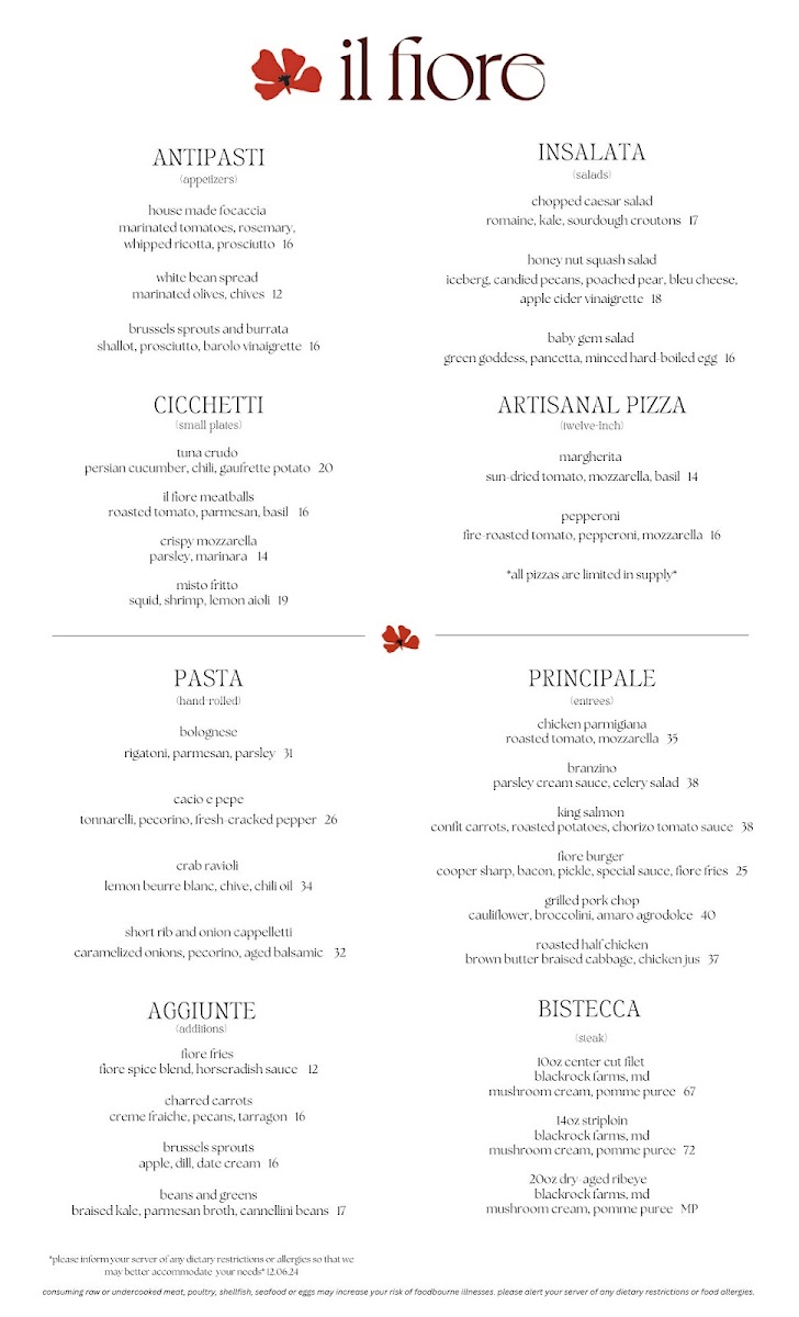 Each plate reflects a commitment to quality and freshness, perfectly complemented by attentive service. From the inviting decor that evokes Italy to the exceptional cocktails, il Fiore promises not just a meal, but an unforgettable dining experience.